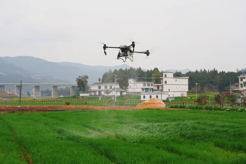 无人机喷洒农药。(苍溪县委宣传部 供图)