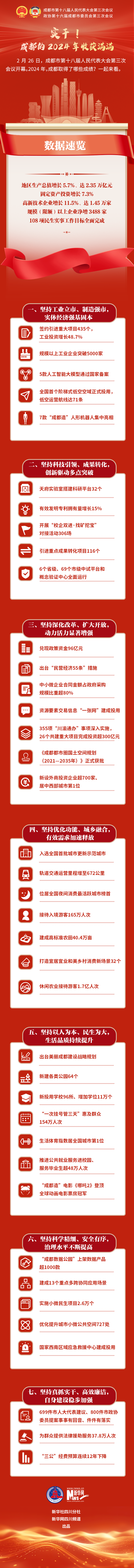 2月26日,成都市第十八届人民代表大会第三次会议开幕。2024年,成都取得了哪些成绩?一起来看。