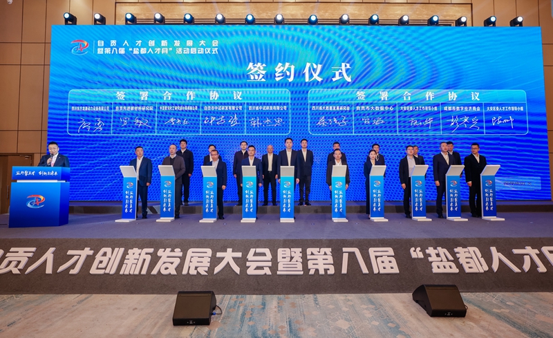 启动仪式上,相关负责人为11名自贡市高端人才顾问、5名自贡市招商引资大使颁发聘书,为2025年“盐都百千万英才计划”创新团队、领军人才和自贡市第十二批院士(专家)工作站授牌、颁发荣誉证书。随后举行了集中签约仪式,市校企合作签约协议4个,商协会签约协议8个,项目平台签约协议8个、总投资约36亿元。(卜一珊)
