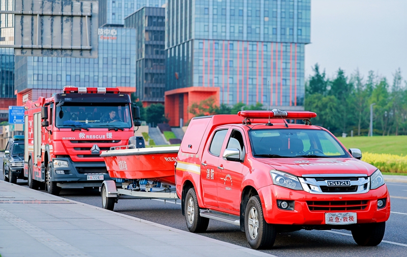 应急救援车辆在赛道外提供保障。(兴隆湖环湖跑组委会 供图)