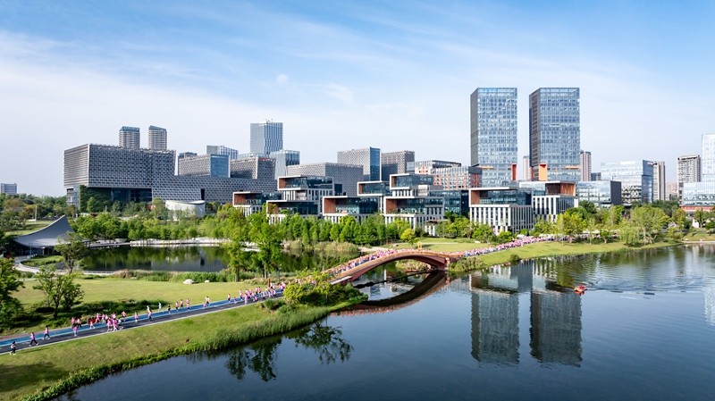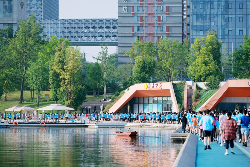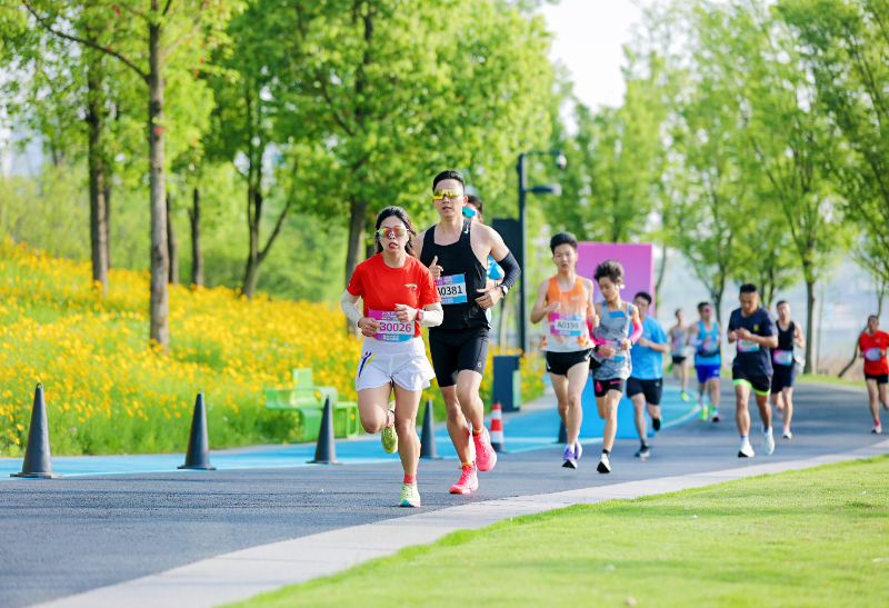 参赛者奔跑在公园城市中。(兴隆湖环湖跑组委会 供图)
