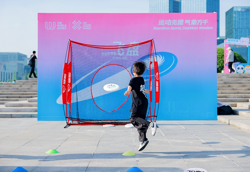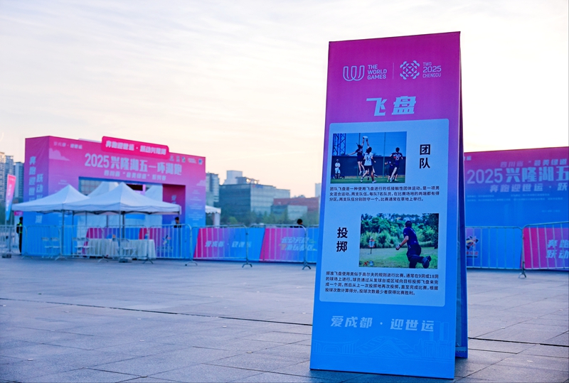 赛事现场设置的成都世运会飞盘项目体验区。(兴隆湖环湖跑组委会 供图)