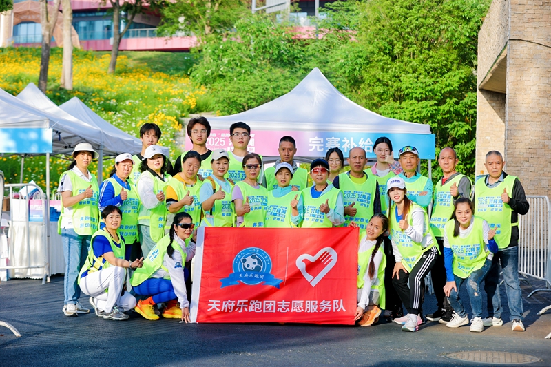 天府乐跑团志愿服务队赛前合影。(兴隆湖环湖跑组委会 供图)
