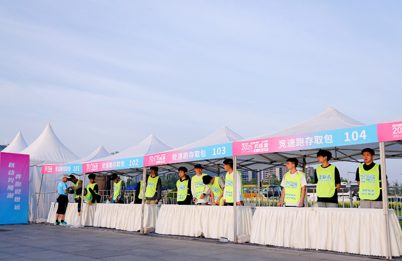 参赛者在竞速跑存取包处存物。(兴隆湖环湖跑组委会 供图)