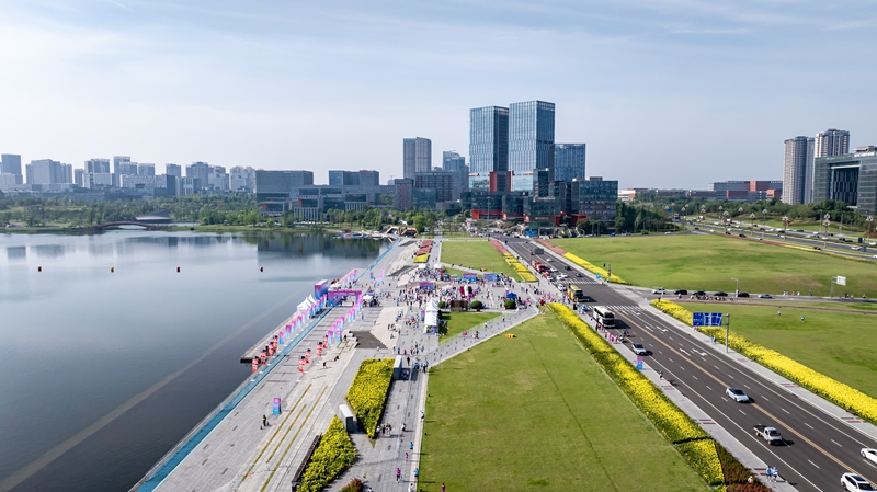 航拍兴隆湖环湖跑起终点。(兴隆湖环湖跑组委会 供图)