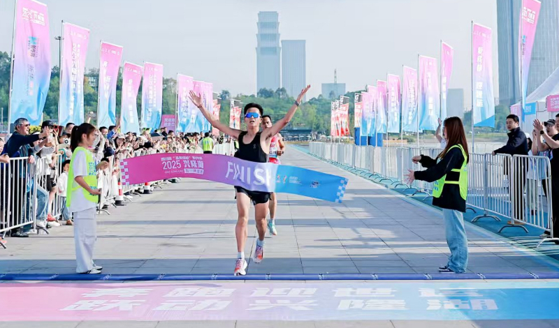 竞速组男子冠军冲线瞬间。(兴隆湖环湖跑组委会 供图)