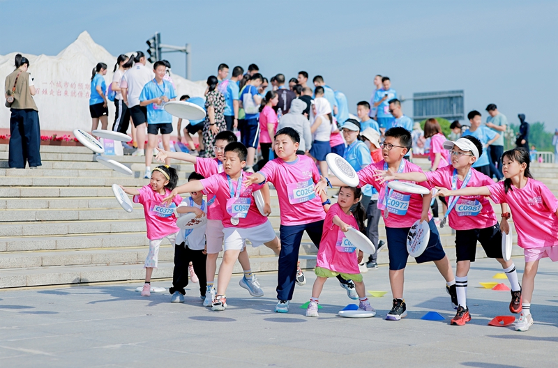 参赛者在现场体验成都世运会竞赛项目。(兴隆湖环湖跑组委会 供图)