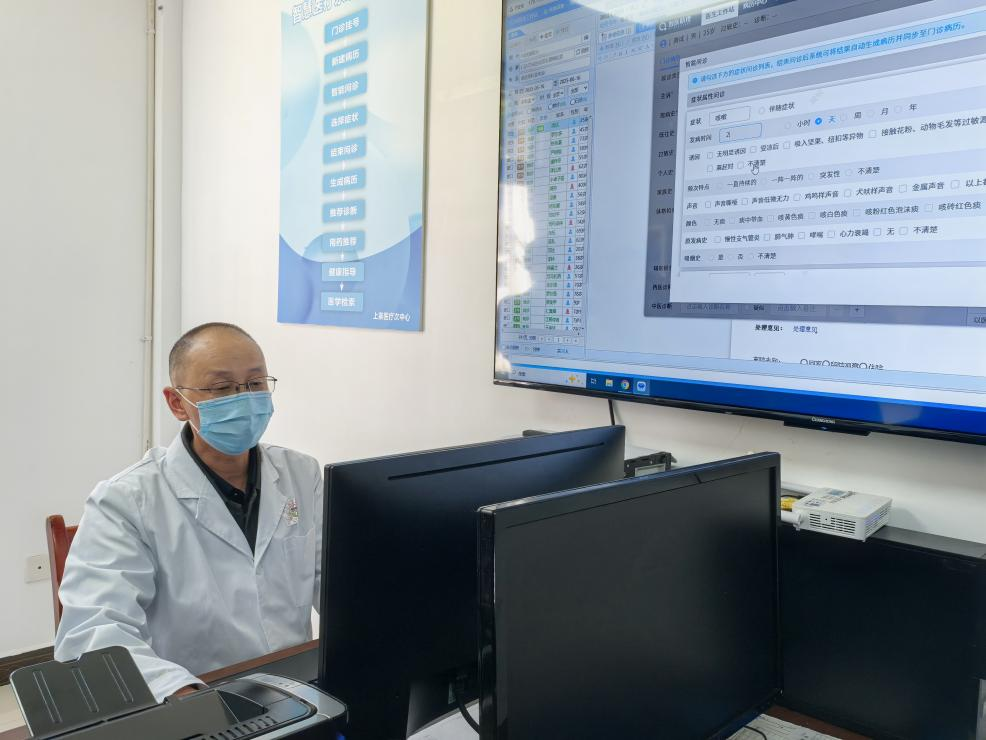 屈明正在使用智慧医疗系统。(李琳晶 摄)
