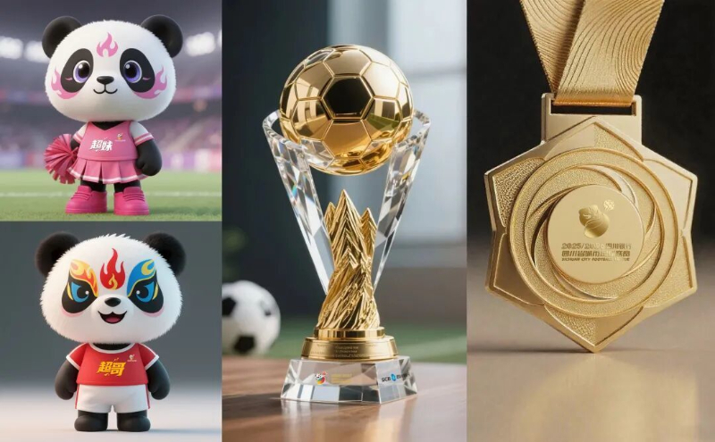“川超”吉祥物、奖杯、奖牌。(图据成都发布)
