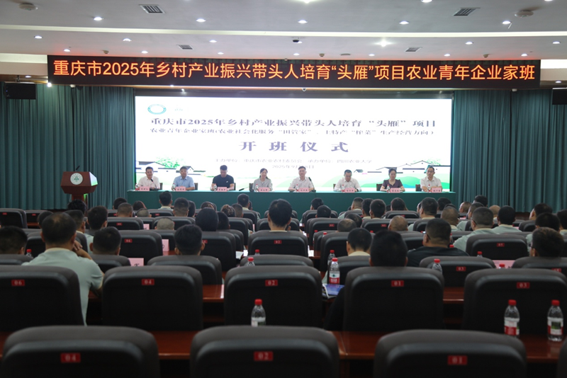 9月18日,重庆市2025年乡村产业振兴带头人培育“头雁”项目农业青年企业家班(农业社会化服务“田管家”、土特产“榨菜”生产经营方向)开班仪式在四川农业大学雅安校区举行。重庆市农业农村委员会社会事业处一级调研员陈兴兵、经作处一级调研员李淑平,重庆市农业广播电视学校副校长蒋志钰,四川农业大学党委常委、统战部部长侯永翠,教务处处长饶含兵,继续教育学院党总支书记杨世义、副院长魏守海,机电学院副院长张黎骅等相关单位负责人及全体重庆“头雁”学员参加仪式。