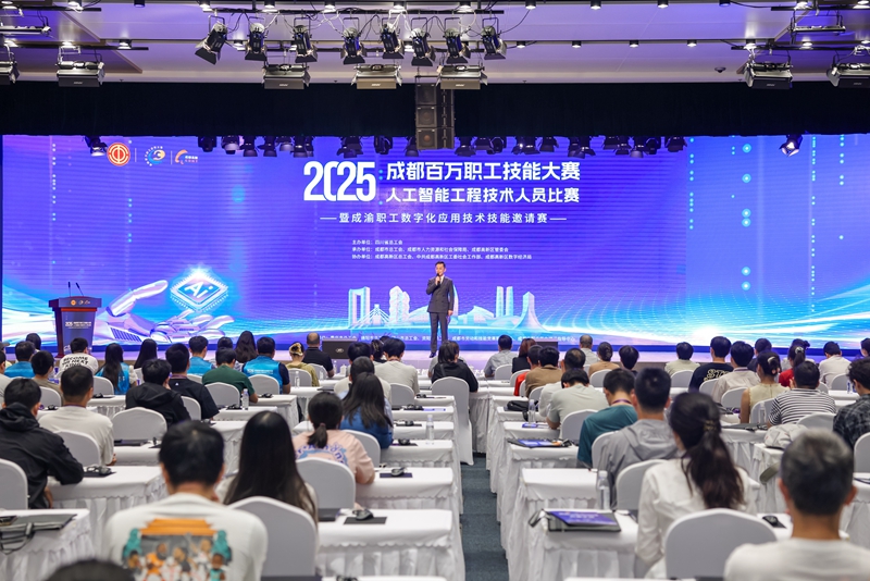 9月25日上午,2025年成都百万职工技能大赛人工智能工程技术人员比赛暨成渝职工数字化应用技术技能邀请赛在成都高新区菁蓉汇开幕。