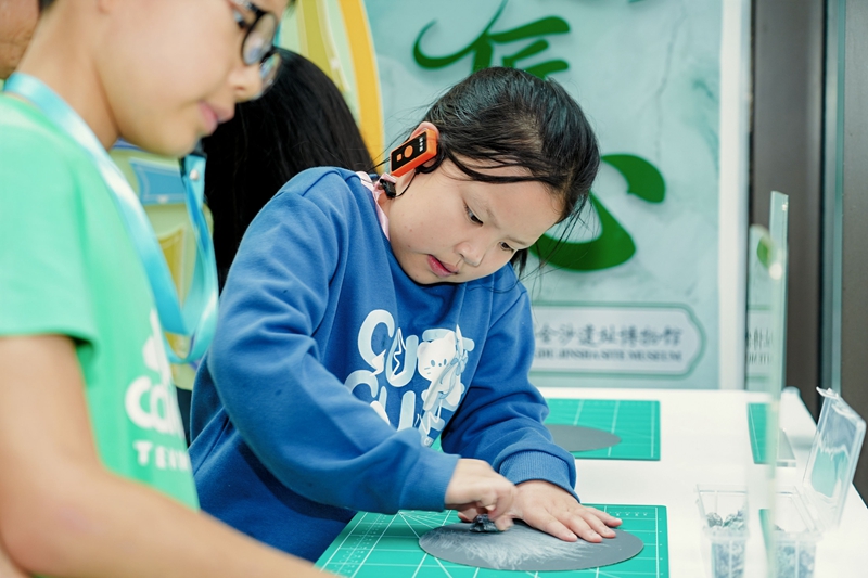 “双节”期间,金沙遗址博物馆精心策划并推出了多项沉浸式文化体验活动,让游客在游览之余,深度感受古蜀文明与传统文化的交融。
