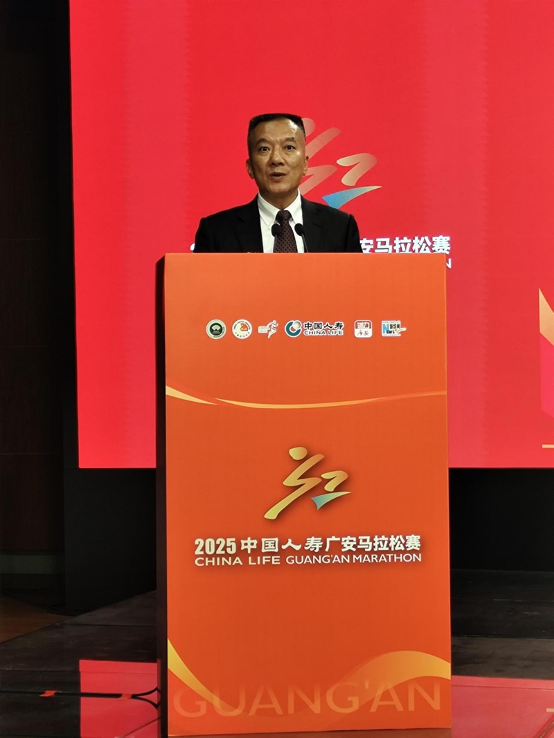 新华通讯社四川分社分党组成员余斌在致辞中表示,广安是成渝地区双城经济圈中的川渝合作示范区,这片兼具红色底蕴与改革活力的土地,一直以奔跑之姿向跨越式发展奋进。近年来,新华社持续关注广安体育事业的发展,从13130个各类体育场地织就“15分钟健身圈”,到县域“一场一馆一中心”实现赛事承接能力全覆盖;从全民健身热潮持续高涨,到四川省第十五届运动会场馆加速成形,广安正书写着全民健身战略高质量发展与高水平体育赛事融合发展的“广安范式”。
