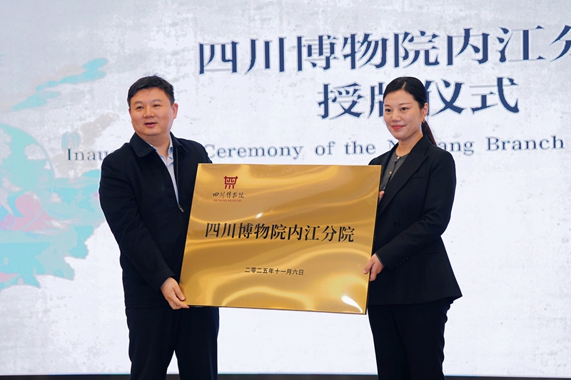 活动现场,四川博物院内江分院正式授牌成立,四川博物院党委书记向和频向内江市张大千纪念馆代表王鼎授牌,《石壁丹青:张大千临摹敦煌壁画集》《张大千艺术研究(第一辑)》《大千敦煌——敦煌笔记》三部研究著作同步发布。(完)