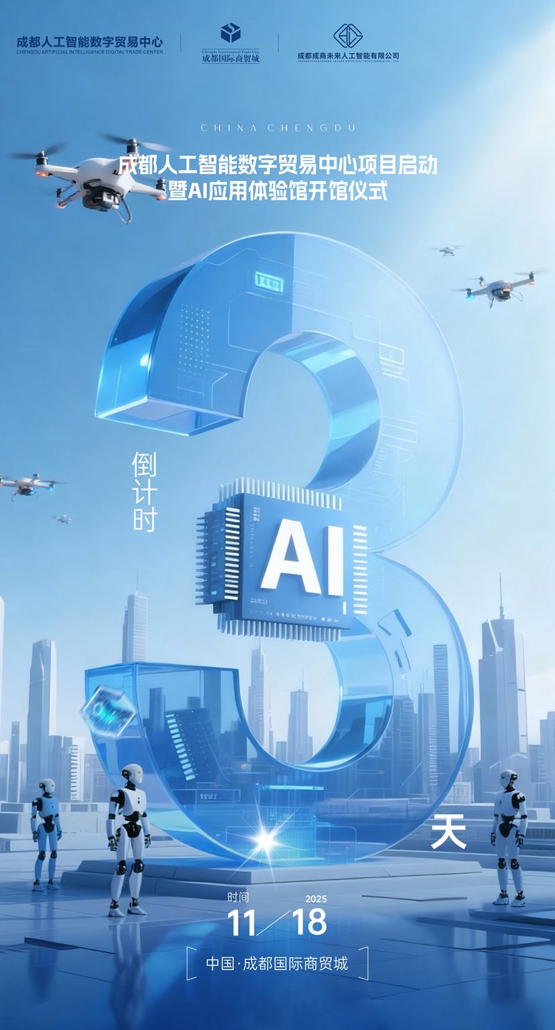 11月18日,成都人工智能数字贸易中心项目启动暨AI应用体验馆开馆仪式将在成都国际商贸城举行。届时,成都人工智能数字贸易中心项目将启动运营,项目将有效吸引人工智能企业集聚,助力成都打造人工智能与数字贸易融合发展高地。