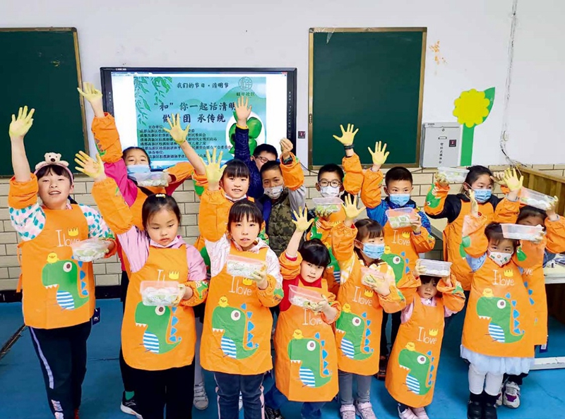 社区儿童做清明青团。(成都高新区桂溪街道 供图)