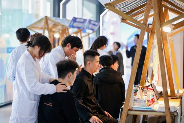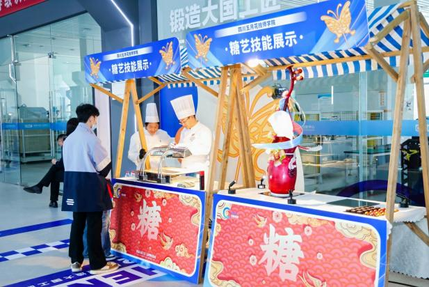 当日下午,活动在“方寸匠心街·技能互动市集”的热烈氛围中拉开帷幕,来自成都市技师学院等7所技工院校的学生现场带来航空秀、茶艺、调酒、中医理疗及人工智能产品等多元技能展示。