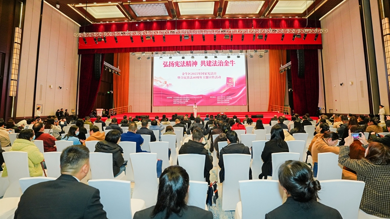 今年12月4日是第十二个国家宪法日,当天,成都市金牛区以“弘扬宪法精神 共建法治金牛——庆祝全民普法40周年”为主题举办法治宣传活动,同步启动2025年宪法宣传周。活动由金牛区委依法治区办、区委宣传部、区人大法制委、区司法局联合主办,区法院、区检察院、区教育局、区税务局协办,来自金牛区各街道、部门及企事业单位的200余名代表共同参与。