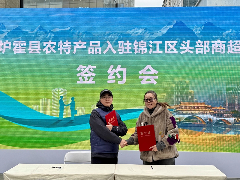 当日,“炉霍农特产品入驻锦江头部商超签约仪式”举行,炉霍密奇奇食品与红旗超市、零食有鸣现场签订长期商品供货合同,正式将青稞饼干、牦牛奶饼干等“炉霍味道”送进城市主流货架。此举不仅打通了炉霍优质农产品从雪域到商圈的“最后一公里”,更以订单化、规模化流通机制,成为消费帮扶向产业帮扶升级的关键落点。