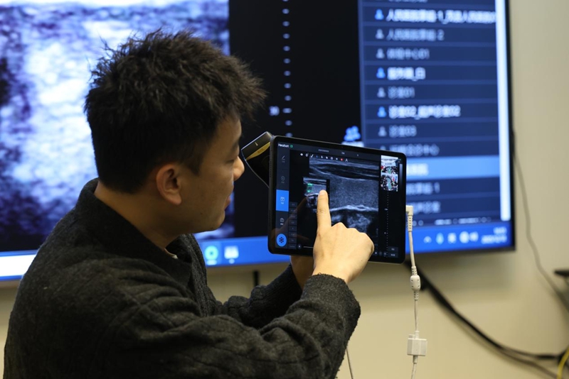 “过去在乡镇,检查完要手写记录,回医院再录入电脑,图像也无法保存。现在用手持超声设备,现场就能生成规范报告,一键上传至平台。”项目技术人员介绍道。自2025年7月启动、12月投用以来,系统已开展两轮集中培训,培训基层医技人员40人次。