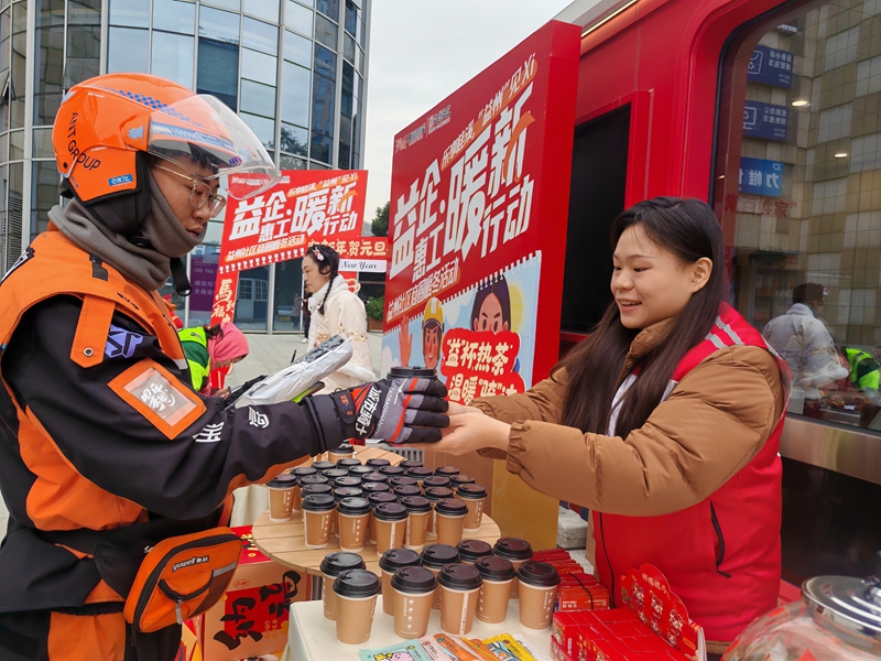 活动现场给新就业群体送上暖心热饮。(益州社区 供图)