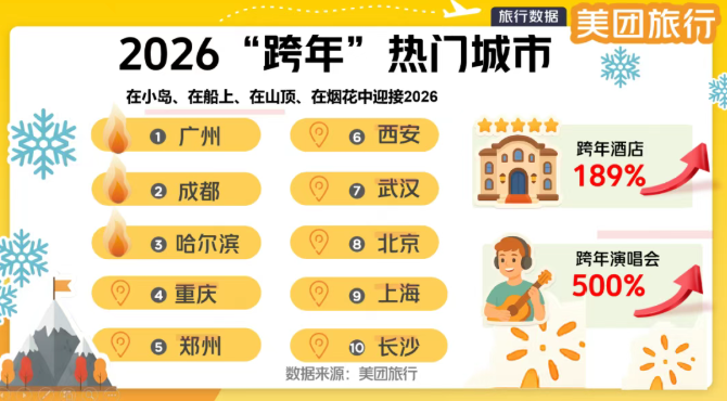 美团旅行最新数据显示,截至12月21日,四川省元旦文旅预订票量增速达122%,成都位列全国跨年热门城市第二位。