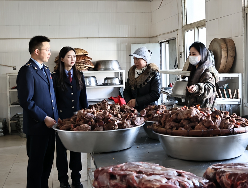 税务干部走进企业加工场所,实地查看牦牛肉制作流程,了解生产经营情况。(国家税务总局四川省税务局 供图)