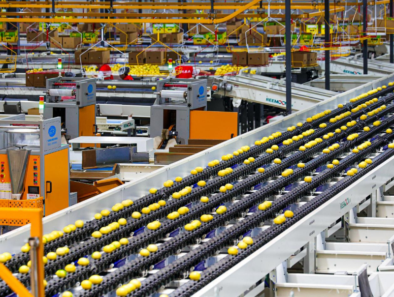 四川省维记农业集团有限公司车间内,多功能六通道智能分选机在分拣柠檬。新华社发(吴坤忠 摄)