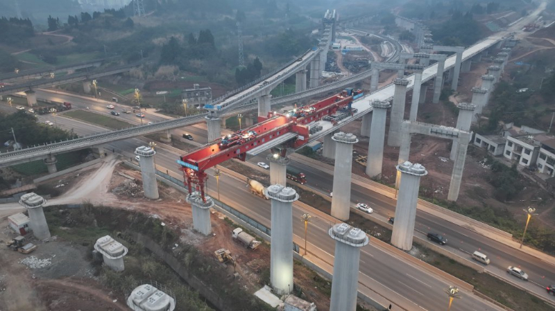 成达万高铁建设忙 成功跨越遂宁市主干道 张勤宝 摄