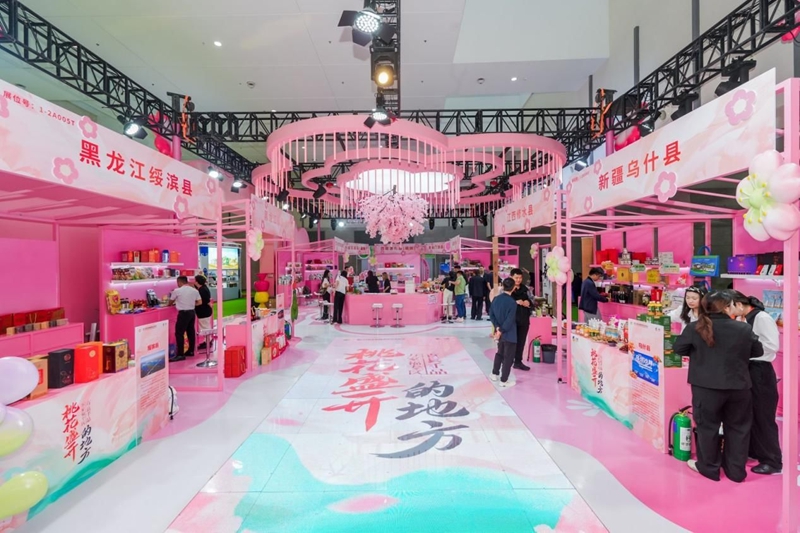 另一边,“特色食品展区”则兼具多样性与文化性:五常大米诠释着国民餐桌的品质共识,山西沙棘饮品彰显着黄土高原的生态价值,诏安青梅食品延伸着闽南风物的产业活力。此外,临县青塘粽子、屏山竹笋、宁阳煎饼、武乡菌菇等数十个县域的百余款特色产品,勾勒出一幅可触可感、可品可购的“中国县域风味地图”。