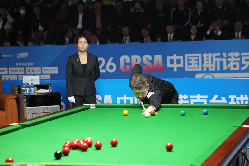 仪式后,国际顶尖选手凯伦・威尔逊与中国名将肖国栋献上精彩的表演赛,用高超球技展现了斯诺克运动的独特魅力,现场掌声不断。