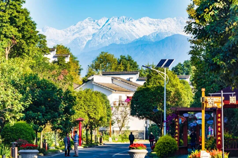 村内青瓦白墙的川西民居错落有致