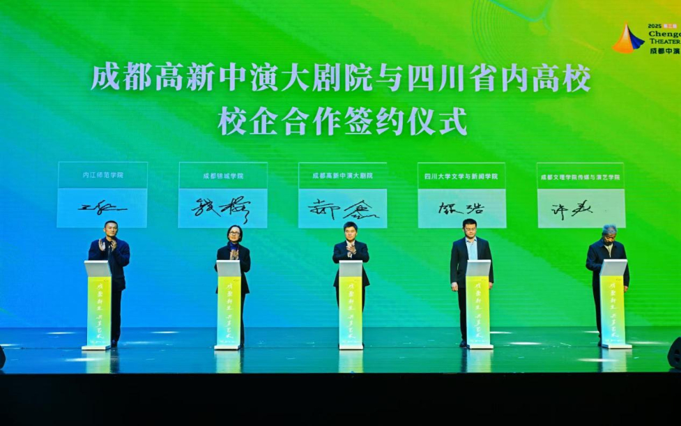 本届戏剧节开幕式上,成都中演制作中心正式成立。成都中演与四川大学文新学院、成都文理学院传媒与演艺学院、成都锦城学院艺术学院、内江师范学院四所院校签署校企战略合作协议,构建产学研深度融合的戏剧人才培养体系,为城市文化可持续发展储备核心力量。