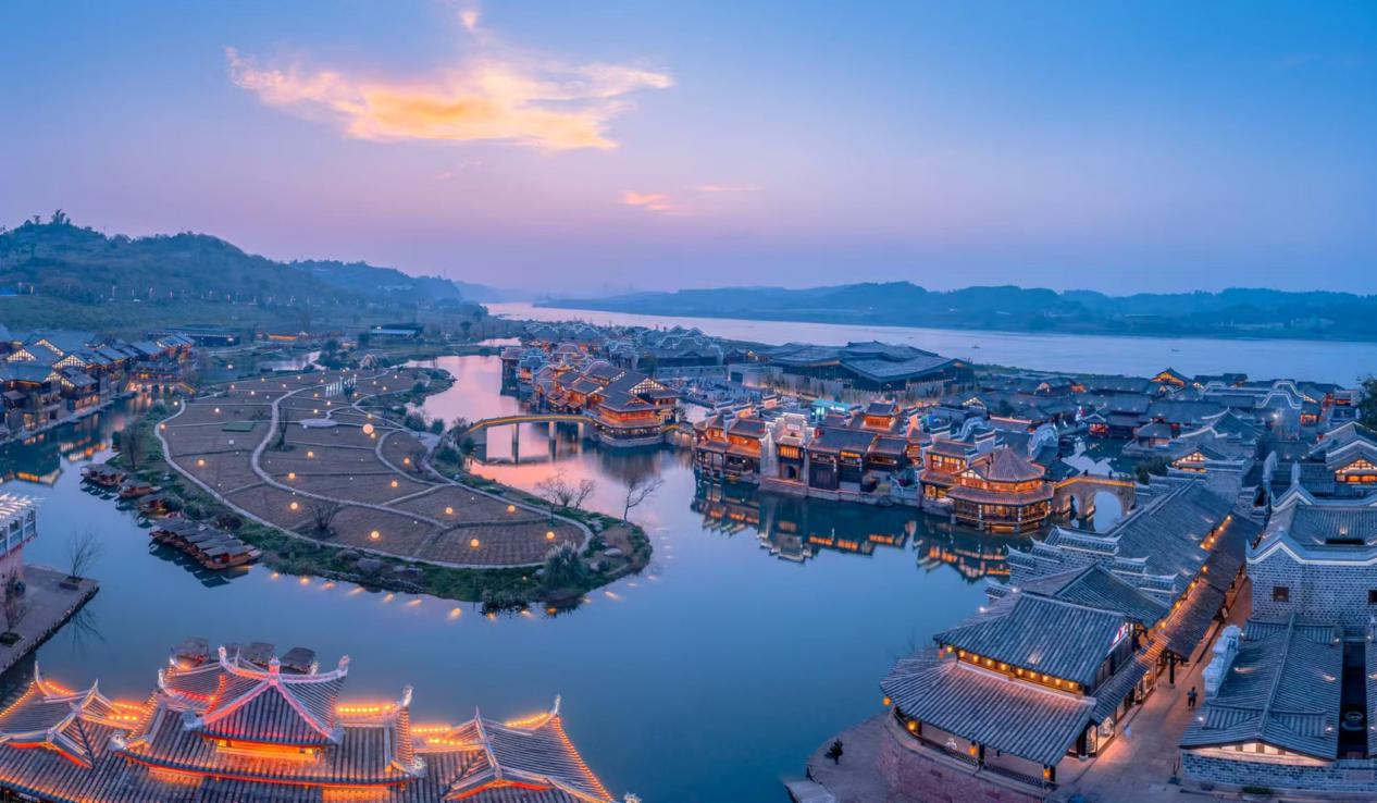 李庄古镇月亮田:位于宜宾翠屏区,水街贯穿其中,仿古建筑飞檐翘角、拔地而起,亭台楼榭、小桥流水相得益彰,开展非遗演艺舞草龙、水调歌头·水上情景舞蹈、繁华盛焰·水上川剧火艺、山高水长·凤凰飞行表演、月湖雅韵·水上民乐演艺等特色活动。