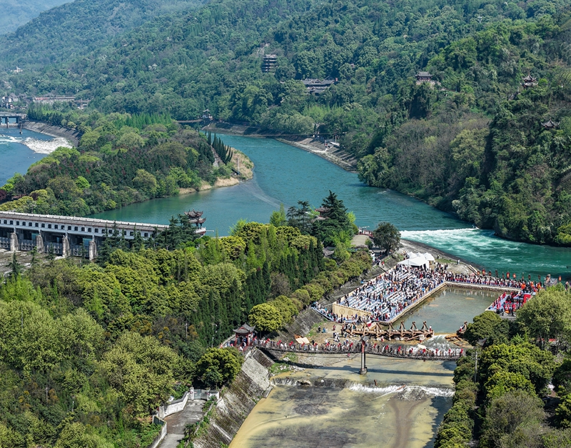 4月3日,时值清明前夕,2026都江堰放水节在四川都江堰景区启幕。
