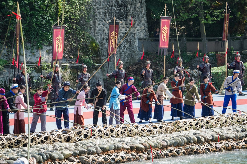 都江堰放水节不仅是地方民俗的盛典,更是展示中华文明治水智慧的窗口,于2006年列入国家级非物质文化遗产。今年放水节现场,情景对话《珍水万世》以蜀郡守李冰、现代水利工作者、堰工及青年学生跨越时空的演绎,生动诠释了“因地制宜、顺势而为、天人合一、治水利民”的东方治水哲学。现场,来自16个国家50余位驻华使节、驻蓉驻渝领事官员及20位友城代表身着汉服,感受中国“治”慧。