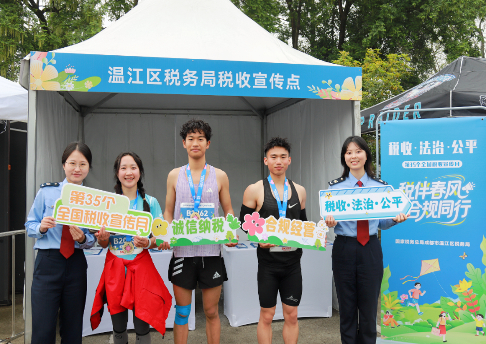 温江区税务局在村糖会和“一路繁花”快乐村跑现场设置“税伴春风 合规同行”税收宣传点,借助大型特色活动流量开展税收普法宣传。