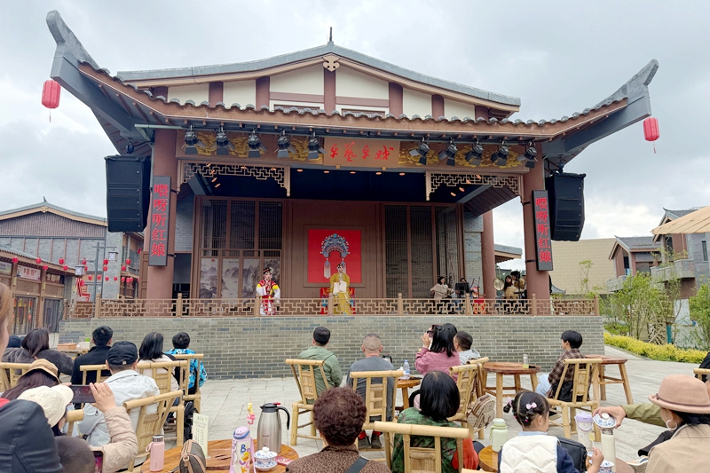 4月2日下午,真红巷内上演了《武松打店》《拷红》《别洞观景》等川剧,演员们身着精美戏服,凭借扎实的唱功、娴熟的身段,将剧中人物演绎得栩栩如生,压轴登场的《变脸吐火》,演员手法迅疾,脸谱瞬息万变,现场掌声与喝彩声此起彼伏。