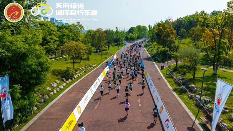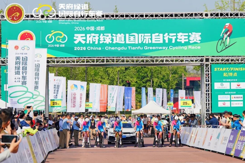 4月18日,2026中国·成都天府绿道国际自行车赛(以下简称天府绿道国际自行车赛)在成都环城生态区开赛。