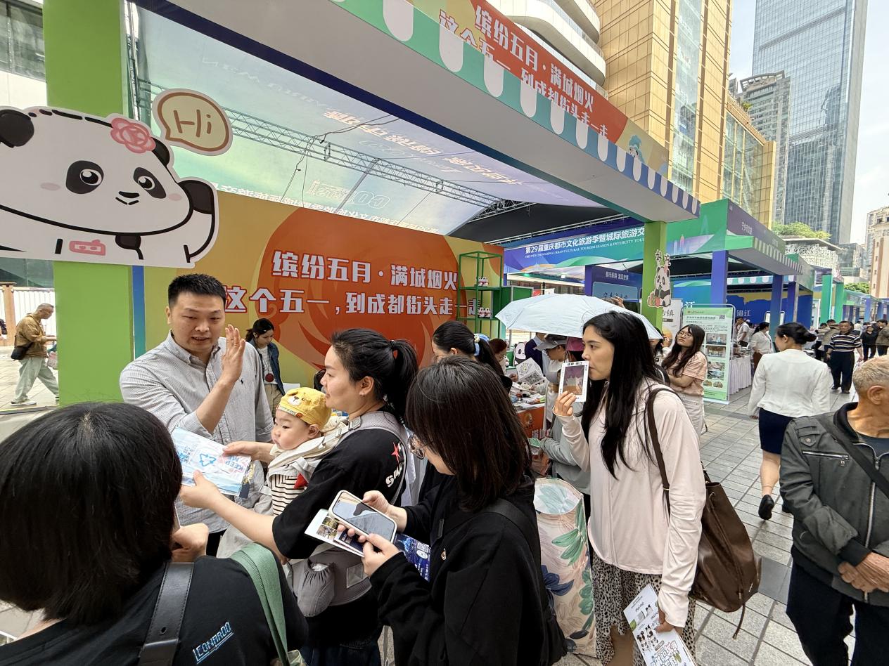 4月23日至26日,成都市文化广电旅游局联合成都都市圈德阳、眉山、资阳三市及部分区(市)县文旅部门、企业,共同亮相第29届重庆都市文化旅游节暨城际旅游交易会。成都展位以“缤纷五月・满城烟火——这个五月,到成都街头走一走”为主题,全方位呈现成都“五一”期间特色文旅场景、主题活动及便民惠民举措,向重庆市民发出诚挚出游邀约。本届展会总参观人数达160万人次,成都展位累计接待观众超3万人次。
