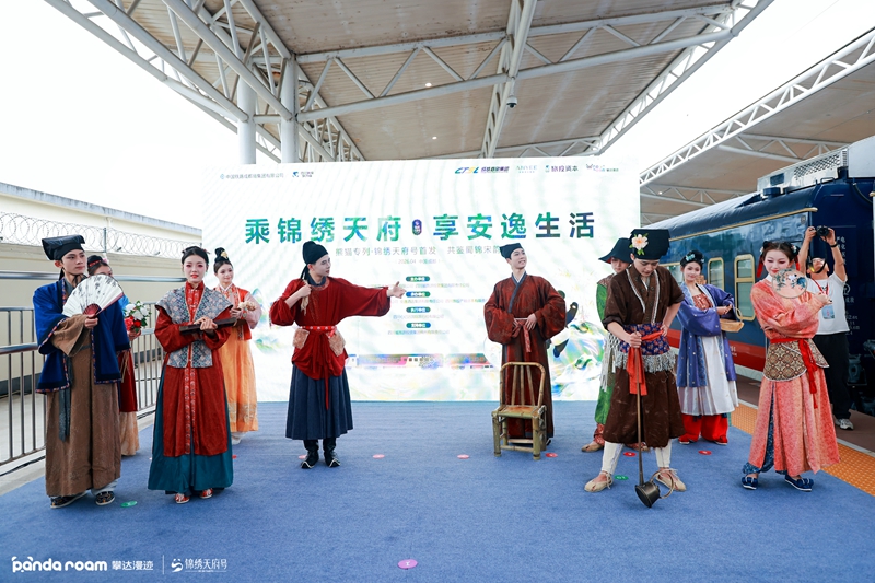 据四川旅投集团副董事长、总经理连华介绍,“锦绣天府号”是该集团继2025年“安逸号”熊猫专列后,全新打造的“铁路+文旅”融合产品。专列以“蜀锦宋韵”为美学主题,聚焦品质化、个性化定位,打造中国传统文化沉浸式移动体验空间。按照运营规划,该专列2026年预计开行二十余趟长短结合线路,目前产品整体销售率超80%,入境游客占比达90%。