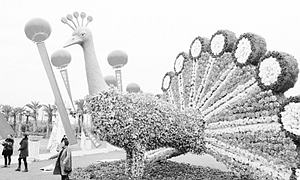 活动现场,盛开的桃花、樱花,以及数万株木本花和数十万盆草本花,与30余个各种造型的大型花雕、草雕、稻草人、汉风雕塑等交相辉映。