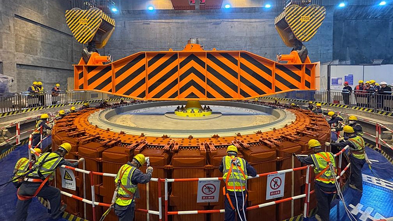 华电金上拉哇水电站首台机组转子顺利完成吊装