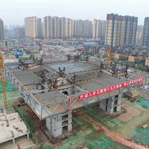 22日,四川省南充市博物馆建设工地,在经历15个小时的稳步上升后,一个重达7800吨的“钢帽子”于22日14点57分抵达离地31.5米的终点,标志西南最大钢结构屋盖在南充成功升顶。