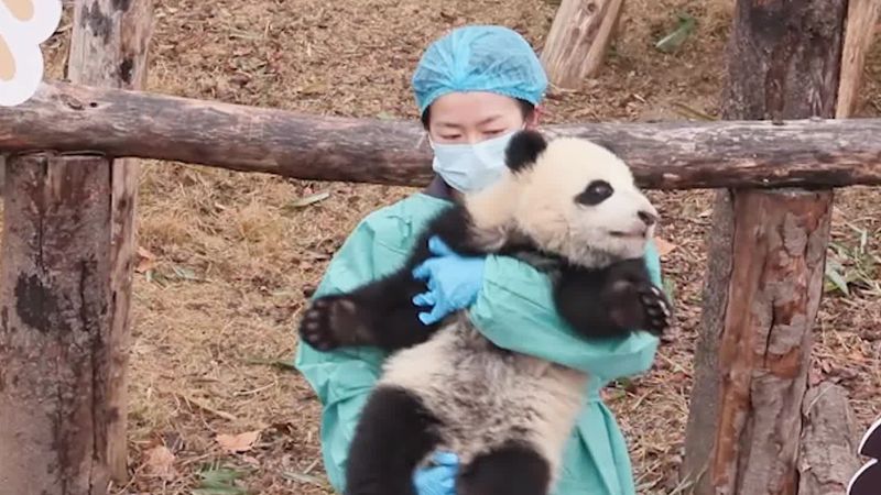 2025年新生熊猫宝宝首次集体亮相 贺新春
