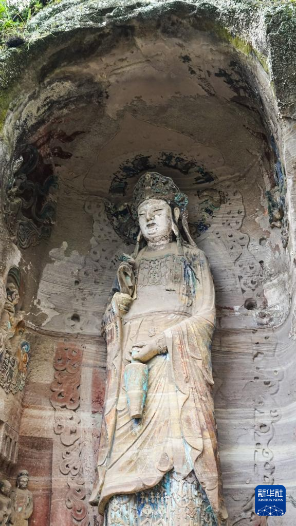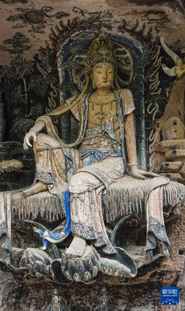 9月21日拍摄的四川省资阳市安岳县毗卢洞的水月观音造像。新华社记者 尚文意 摄