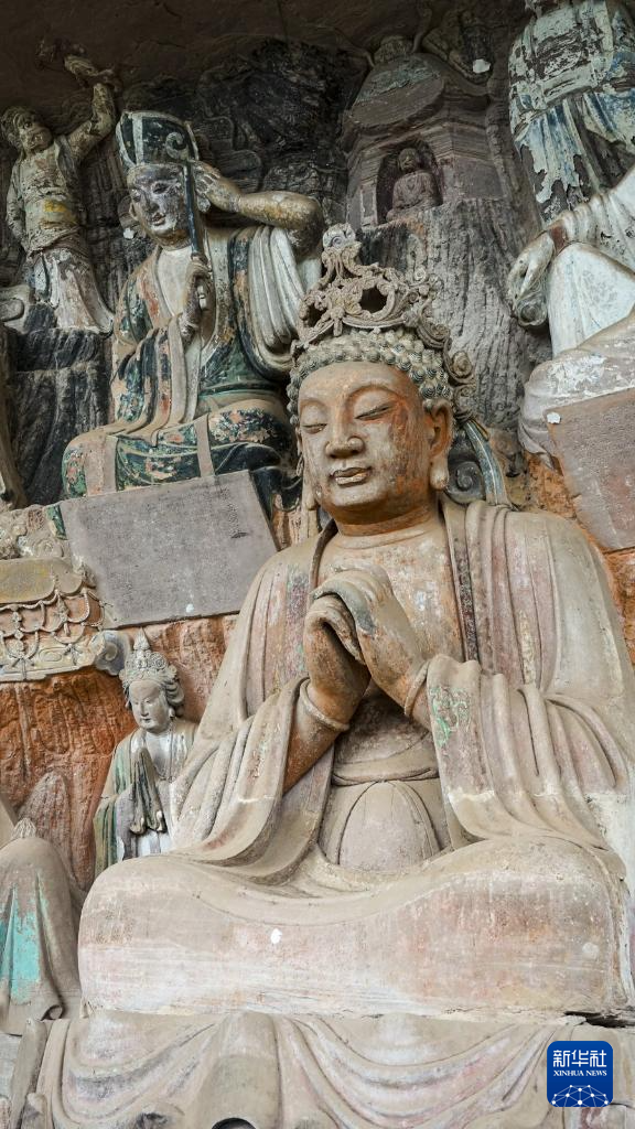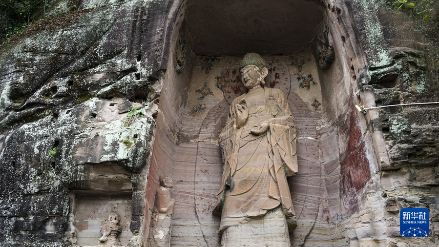 9月21日拍摄的四川省资阳市安岳县圆觉洞景区的释迦牟尼石窟。新华社记者 尚文意 摄