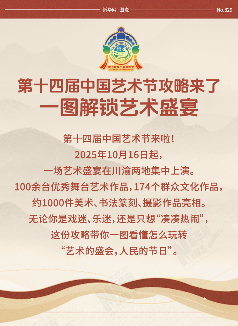 2025年10月16日起,一场艺术盛宴在川渝两地集中上演。100余台优秀舞台艺术作品,174个群众文化作品,约1000件美术、书法篆刻、摄影作品亮相。无论你是戏迷、乐迷,还是只想“凑凑热闹”,这份攻略带你一图看懂怎么玩转“艺术的盛会,人民的节日”。